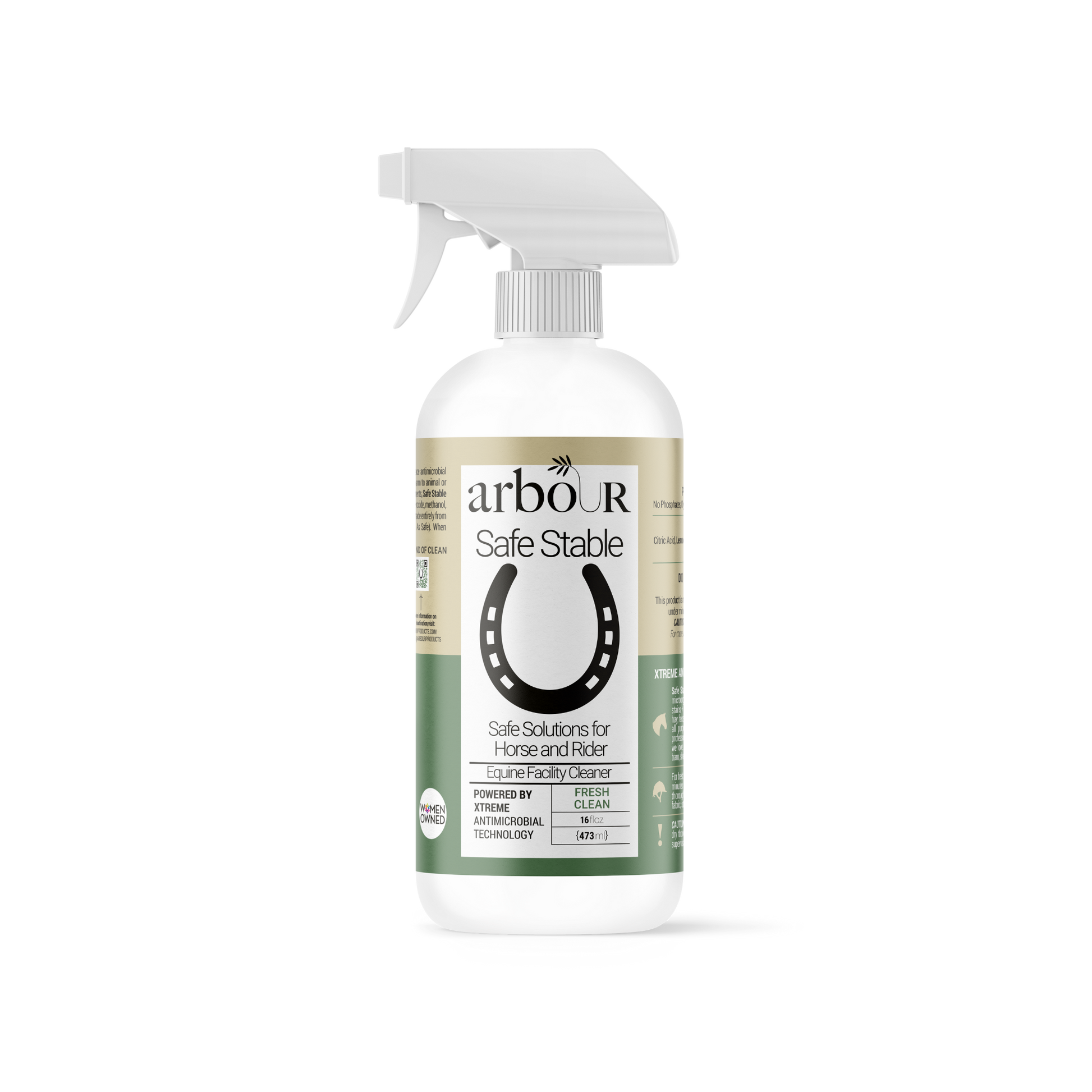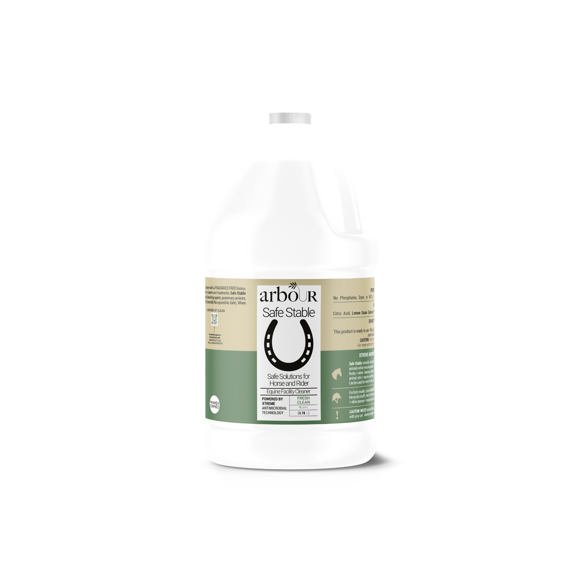 Safe Stable naturally neutralizes a broad spectrum of bacteria + microorganisms infectious only to animals while removing odors, stains + other organic residue - such as dried on saliva, left over feed, hay, feces + urine - leaving surface clean fresh + safe. Our non-toxic, all purpose cleaner is trusted by large animal vets and equine professionals to get the job done without harming the pets and planet we love. Can be used for wash stalls, trailers, tack trunks, all over barn, shed, water towers and farm facilities.